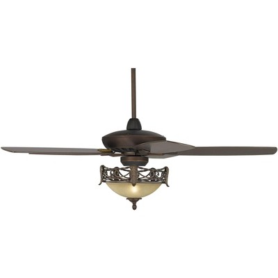 52" Casa Vieja Rustic Vintage Ceiling Fan with LED Light Remote Oil Rubbed Bronze Scavo Glass Bowl Low Profile for Living Kitchen Bedroom Family Room