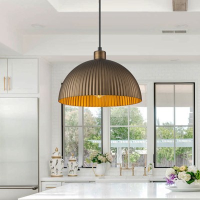LLHZSY 1-Light Industrial Farmhouse Dome Pendant Ceiling Light Fixture-11 4/5", Antique Bronze