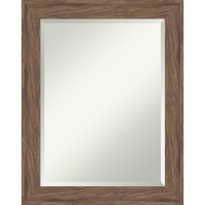 21" x 27" Non-Beveled Wild Wood Brown Narrow Bathroom Wall Mirror - Amanti Art: Rectangle Vanity Mirror, Polystyrene Frame