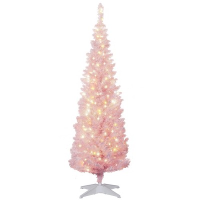 HOMCOM Pre-Lit Slim Noble Fir Artificial Christmas Tree with Realistic Branches, Warm White LED Lights and Tips