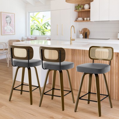 Dyonery 26.8" Height Counter Height Swivel Bar Stools Set of 2, Upholstered Counter Kitchen Barstools with Back, Solid Wood Legs, Fabric - Grey