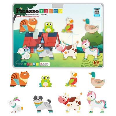 PICASSO-TILES 7PCS Magnetic Animal Action Figures Toy Set, STEM Learning Construction Magnet Blocks, Pretend Play Educational Kit for Kids 3+