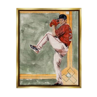 Kids' Wall Art by Melissa Wang Baseball Pitcher Sports Painting Gold Framed Kids' Floater Canvas - Stupell Industries: Sport Artwork