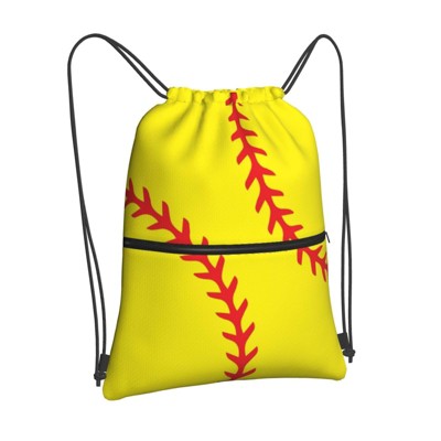 Outdoor Sports Softball Drawstring Backpack, Waterproof Drawstring Bag with Front Zipper Pocket and Inside Zipper Pocket
