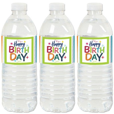 Big Dot of Happiness Cheerful Happy Birthday - Colorful Birthday Party Water Bottle Sticker Labels - Set of 20