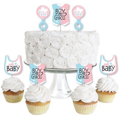 Big Dot of Happiness Baby Gender Reveal - Dessert Cupcake Toppers - Team Boy or Girl Party Clear Treat Picks - Set of 24