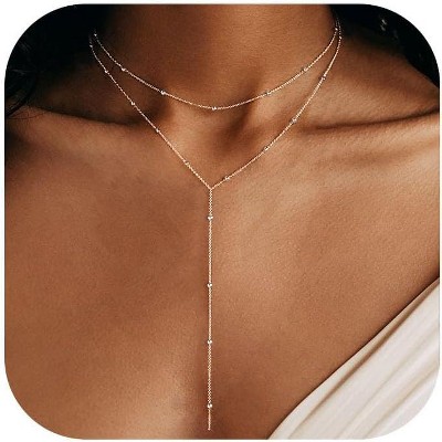 Two-Tone Gold & Silver Y Necklace, Layered Dangle Statement Body Chain For Women, Beach Boho Cleavage Jewelry For Vacation Or Prom