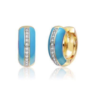 Guili 14K Gold Plated Hoop Earrings with Colored Enamel and Sparkling Clear CZ Stones, Creating a Chic, Stylish, and Eye-Catching Accessory