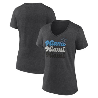 MLB Miami Marlins Women's Gray Short Sleeve V-Neck T-Shirt