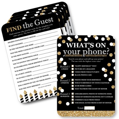 Big Dot of Happiness Adult Happy Birthday - Gold - 2-in-1 Birthday Party Cards - Activity Duo Games - Set of 20