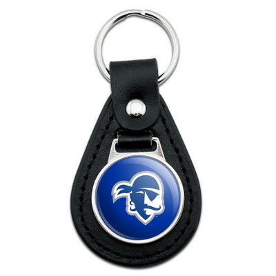 Presbyterian College Blue Hose Logo Black Leather Keychain