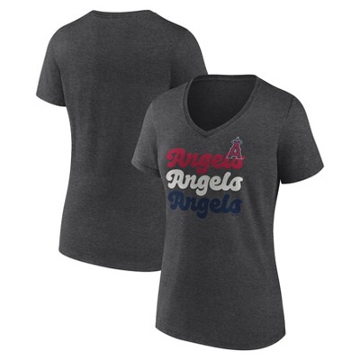 MLB Los Angeles Angels Women's Gray Short Sleeve V-Neck T-Shirt