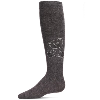 Memoi Girls Ribbed Cotton-Rich Knee High Sock with Embroidered Teddy Bear