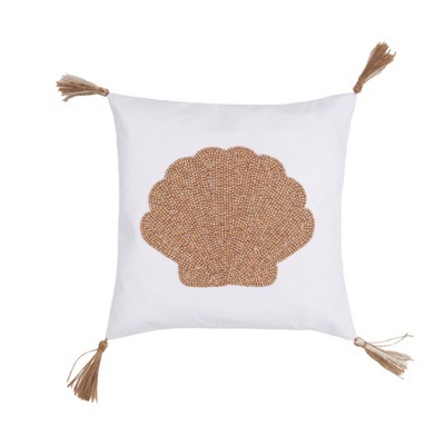 Saro Lifestyle Seashell Shorescape Poly Filled Throw Pillow, White, 13"x17"