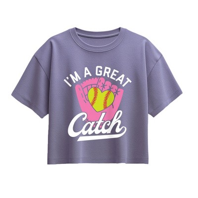 Girls' - Instant Message - I'm a Great Catch Softball Short Sleeve Boxy Graphic T-Shirt