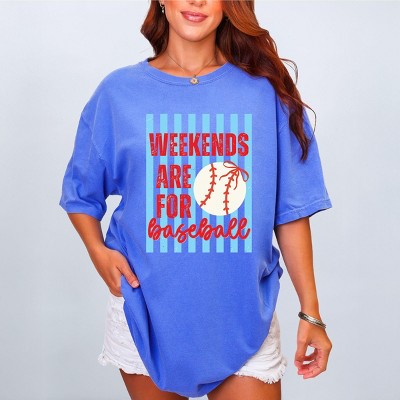Weekends Are For Baseball Stripes - Women's Garment Dyed Graphic T-Shirt