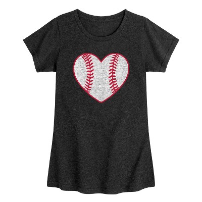 Girls' - Instant Message - Heathered Baseball Heart Fitted Short Sleeve Graphic T-Shirt