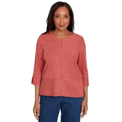 Alfred Dunner Womens Embellished Spliced Solid Top, Spice, Size S