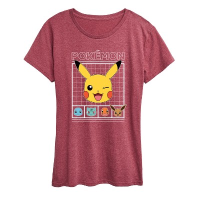 Women's - Pokémon - Eevee Pikachu Charmander Squirtle Bulbasaur Grid Short Sleeve Graphic T-Shirt