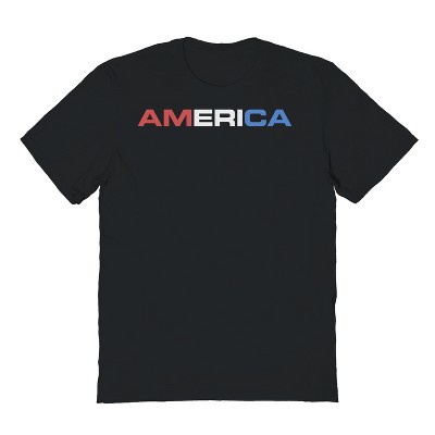 Rerun Island Men's America Bold Type Logo Red And Blue Americana 4Th Of July Short Sleeve Graphic Cotton T-Shirt - Black L