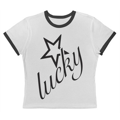 Rerun Island Women's Lucky Stars Black Short Sleeve Graphic Cotton Retro Vintage Ranger Baby Tee - White Caviar XXL