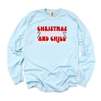 Simply Sage Market Women's Christmas Movies and Chill Checkered Long Sleeve Garment Dyed Graphic Tee