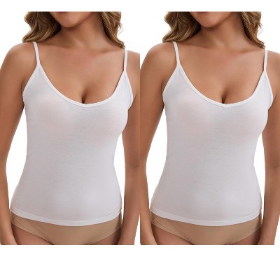 INSPIRE CHIC Women's V Neck Non-Adjustable Spaghetti Straps Lightweight Unpadded Loose Fit Solid Basic Tank Top 2 Packs