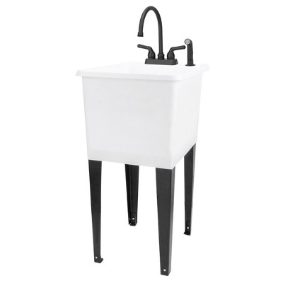 Tehila Standard Freestanding White Utility Sink with Gooseneck Faucet by Utility Sink