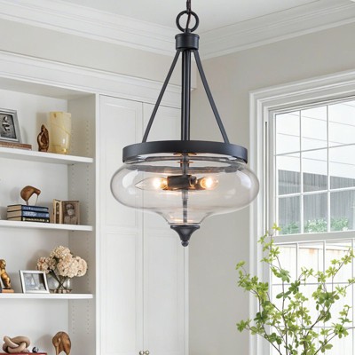 LNC Chispa 3-Light Matte Black Drum LED Dry Rated Chandelier: UL Listed, Adjustable Height, Crystal Decor