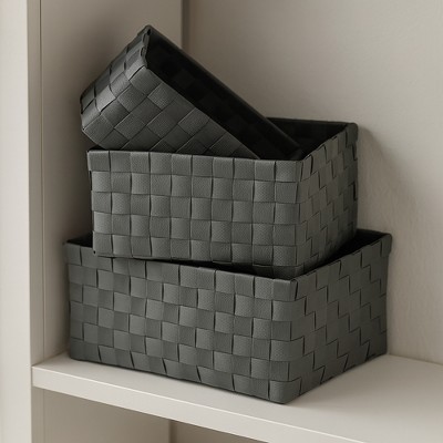 Evideco French Home Goods Set of 3 Stackable Cotton and Seagrass Baskets - Perfect for Home Organization and Stylish Storage