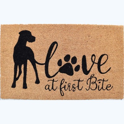 HomeRoots 17" X 29" Natural and Black Coir Hi Bye Outdoor Door Mat