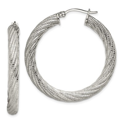 Chisel Stainless Steel Polished and Textured Hollow Hoop Earrings