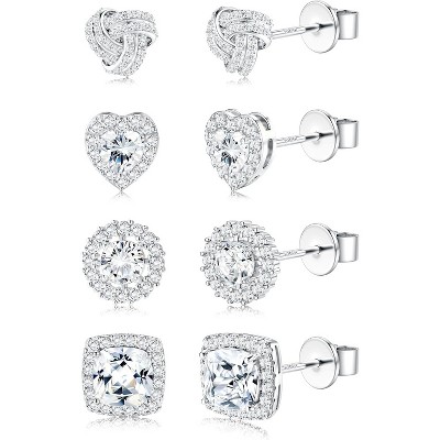 4 Pairs Sterling Silver & 14K Gold Plated Stud Earrings: Celtic Heart & CZ Designs for Sensitive Ears