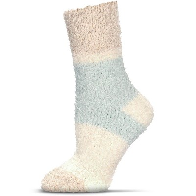 Memoi Women's Colorblock Teddy Bear Plush Crew Socks Ivory 9-11