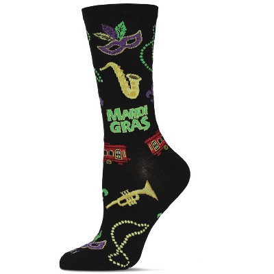 Memoi Women's Mardi Gras Bamboo Crew Socks