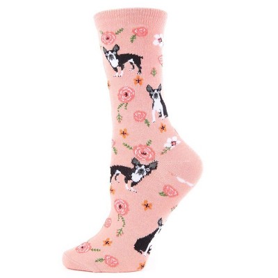 Memoi French Bulldog and Roses Bamboo Blend Crew Novelty Socks