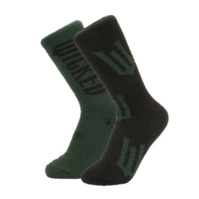 Wicked Logo on Green and Black Womens Chenille Cozy Crew Socks