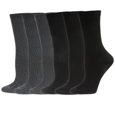 Memoi Women's 6 Pair Pack Basic Rib/Flat Knit/Cable Crew Socks