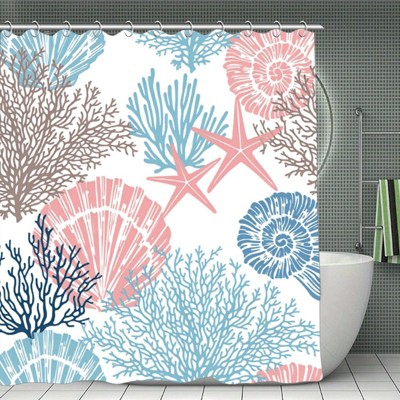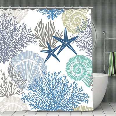 Nautical Coastal Shower Curtain, Beach Ocean Theme Shower Curtain for Bathroom Decor,Tropical Seashell Starfish Shower Curtain Set 70.8x70.8Inch