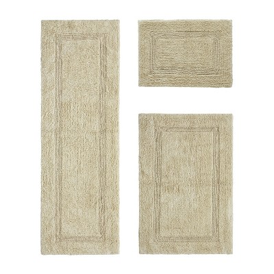 Lux Premium 100% Cotton Ultra-Soft Tufted Solid Reversible 3 Piece Bath Rug Set, Water-Absorbent, Durable, Machine Washable Bathroom Rug