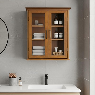 Teamson Home Avery 2-Door Wall Storage Cabinet with Adjustable Shelves, Antique Brass Handles