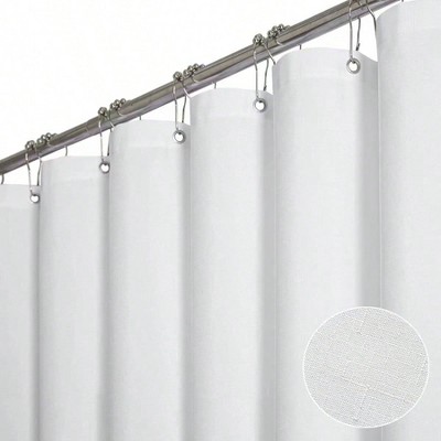 White Fabric Shower Curtain Set, Cotton Blend Waffle Weave with Snap - in Liner, 71x74 Inches
