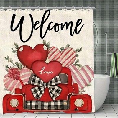 Valentine's Day Red Truck Heart Bouquet Welcome Shower Curtain - Gift Ready Polyester 70.8x70.8Inch