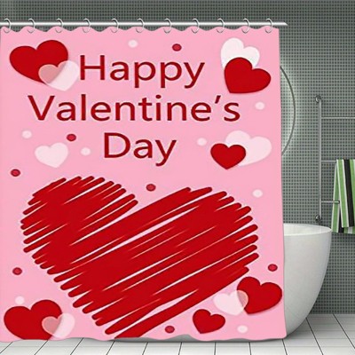 Valentine's Day Shower Curtain, Pink & Red Heart Print, High-Density Polyester, Waterproof, Easy Clean, Gift 70.8x70.8Inch