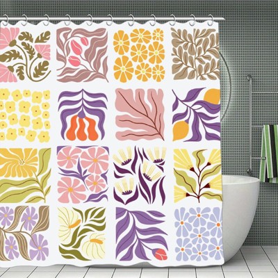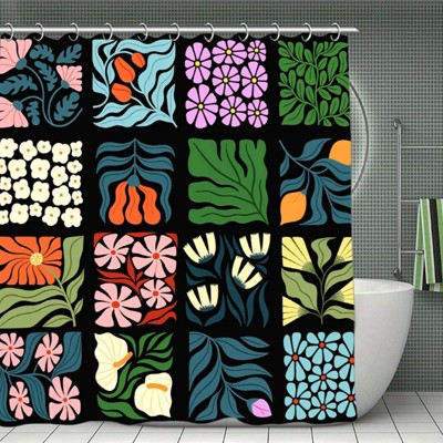 Retro Shower Curtain Vintage Abstract Boho Floral Shower Curtains Botanical Geometric Groovy Pattern Shower Curtain 70.8x70.8Inch