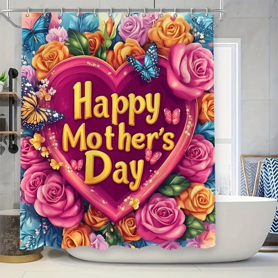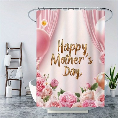 Lomsoe 4pcs Happy Mother's Day Logo & Pink Balloon Rose Shower Curtain Set For Home Bathroom Decor