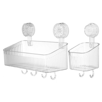 Unique Bargains Wall Mount Strong Suction Cup Shower Caddy with Hooks 2 Pcs