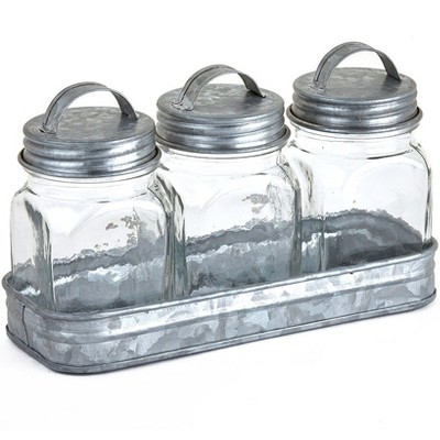 The Lakeside Collection Set of 3 Glass Canisters in Galvanized Tray -