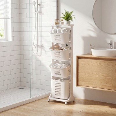Bathroom Cabinet with Laundry Basket, Tilt-Out Hamper Storage Unit with Top Shelves and Drawer for Bathroom Laundry Room