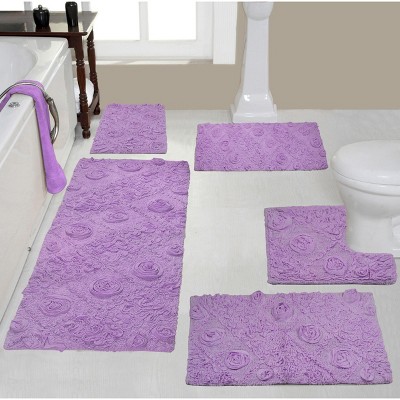 Modesto Bath Rug Bathroom Rugs Set, Washable Rug, Extra Soft and Absorbent bath Rug, Bath Mat Set, Non-Slip, 5 Pcs Set with Contour, Purple